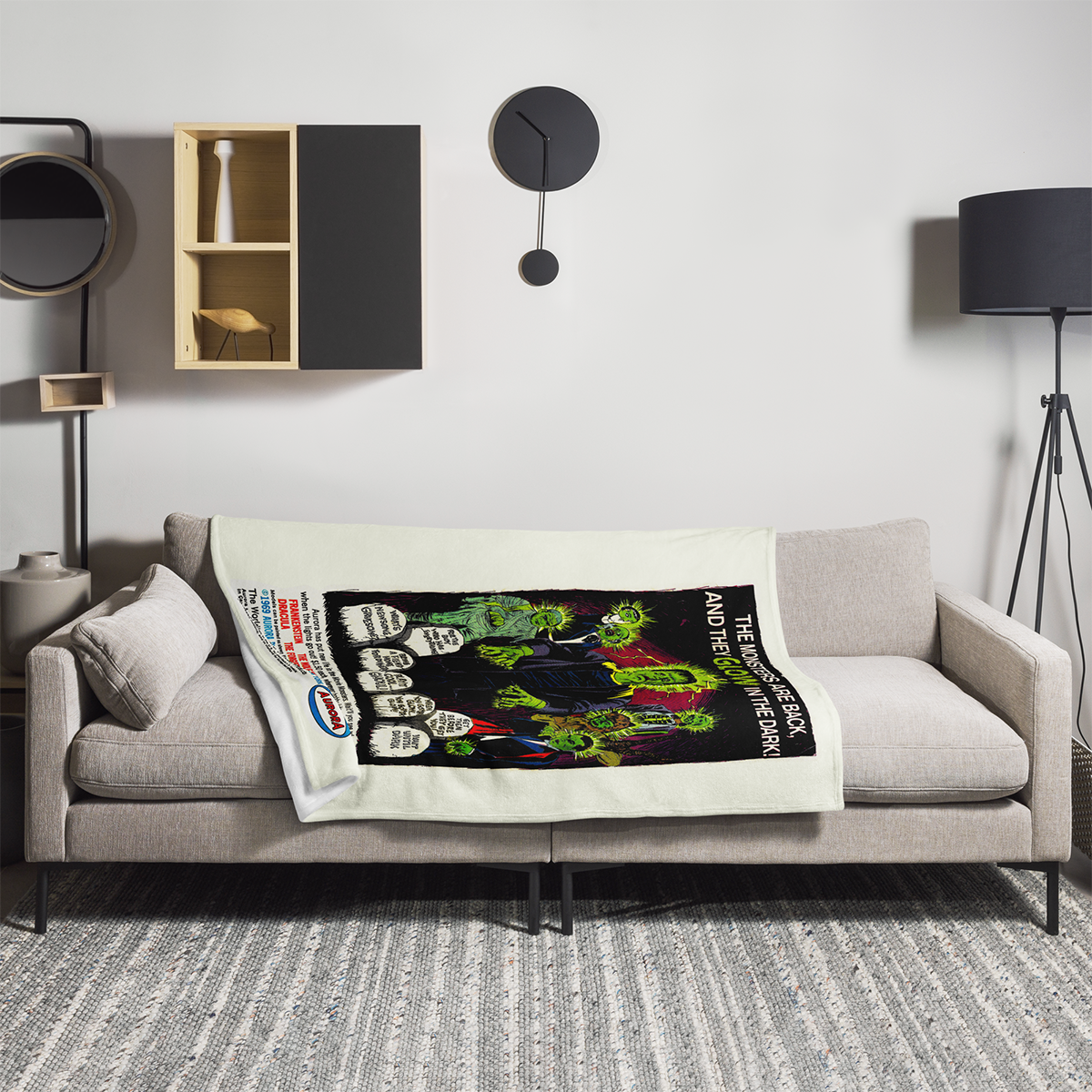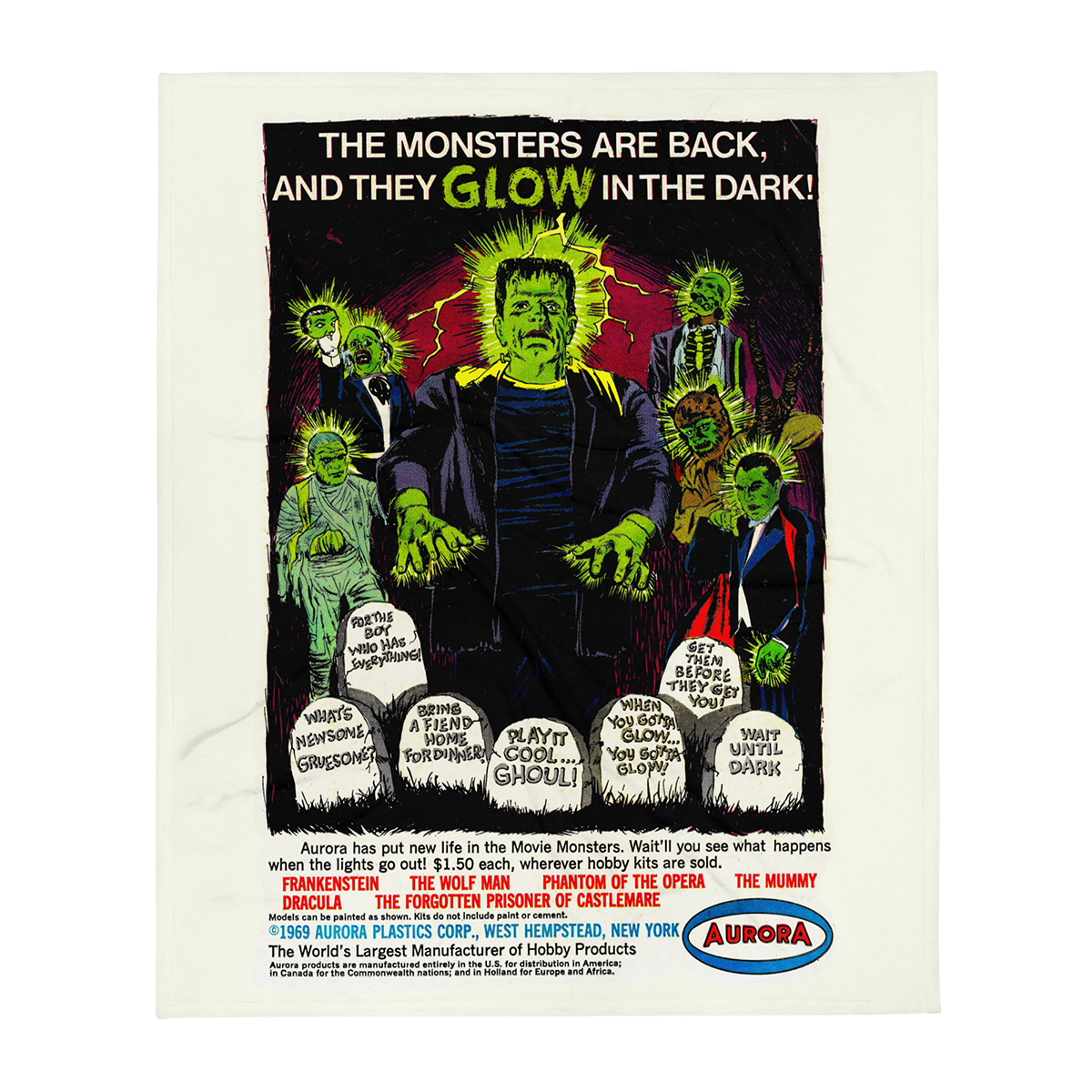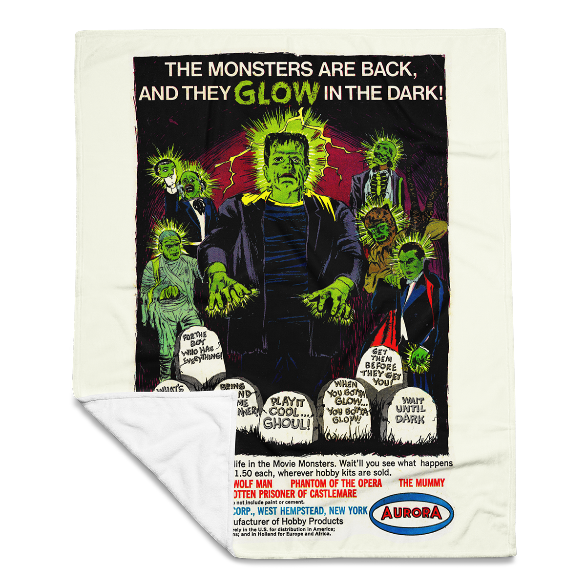 60x80 Aurora GLOW Monsters 1969 Comic Book Ad Throw Blanket